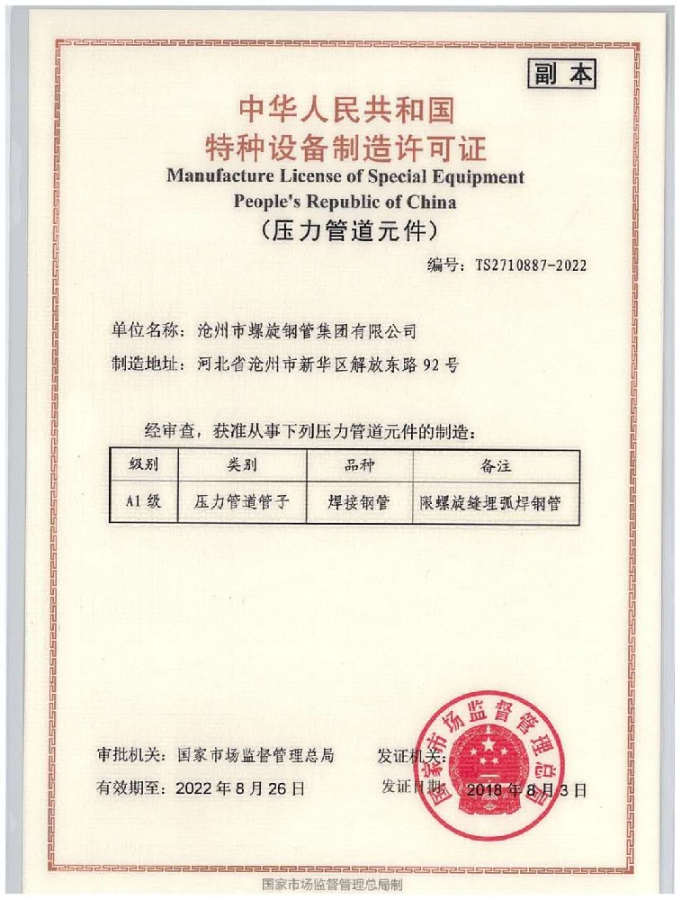螺旋鋼管執行標準